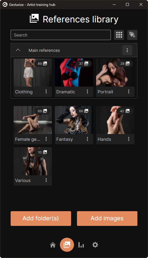You can create custom libraries from your references and use them coupled with any available training. A library can be created by choosing a folder or individual files. Once a folder is selected, all files in it and its subfolders will be loaded and added to the library for future use.